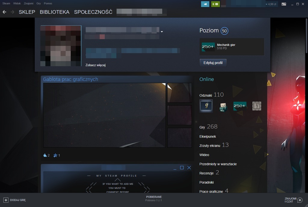 Siema dopiero teraz dowiedziałem sie jaki byłem głupi musisz po prostu na swoim profilu steam po prawej stronie poszukać prace graficzne następnie musisz tam jedną dodać wtedy po prostu odblokowuje ci się opcja gabloty gablota prac graficznych. Czy ta gablota to tzw. NYSHUN 423 Napisano 17 Października 2016. Poradnik jak zrobić 𝑨𝑵𝑰𝑴𝑶𝑾𝑨𝑵Ą gablotę prac graficznych na steam 𝑩𝑬𝒁 Ż𝑨𝑫𝑵𝒀𝑪𝑯.